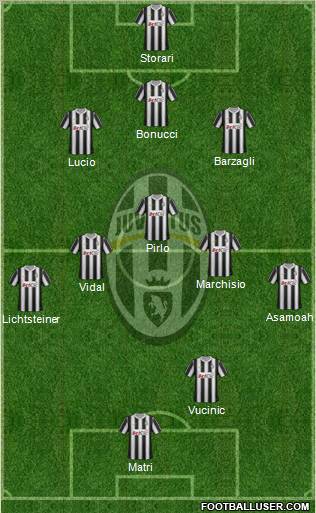 Matri · Vucinic · Lichtsteiner · Asamoah · Vidal · Marchisio · Pirlo · Lucio · Barzagli · Bonucci · Storari