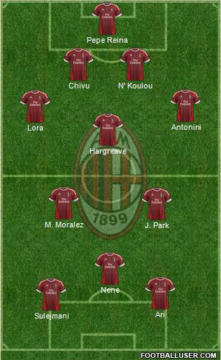 Sulejmani · Ari · Nene · J. Park · M. Moralez · Hargreave · Lora · Antonini · Chivu · N' Koulou · Pepe Reina