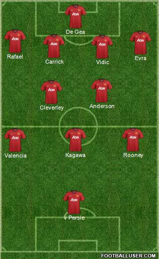 De Gea · Rafael · Evra · Carrick · Vidic · Anderson · Cleverley · Kagawa · Rooney · Valencia · v Persie
