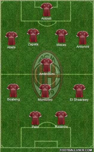 Pato · Robinho · Montolivo · El Shaarawy · Boateng · Ambrosini · Abate · Antonini · Mexes · Zapata · Abbiati