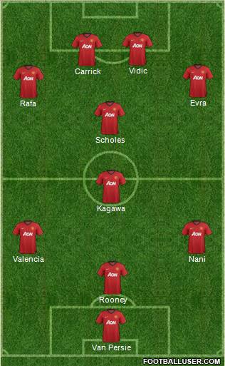 Van Persie · Rooney · Valencia · Nani · Kagawa · Scholes · Rafa · Evra · Carrick · Vidic