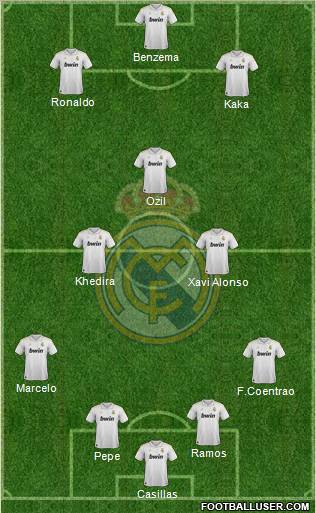 Casillas · Pepe · Ramos · F.Coentrao · Marcelo · Xavi Alonso · Khedira · Ozil · Kaka · Ronaldo · Benzema