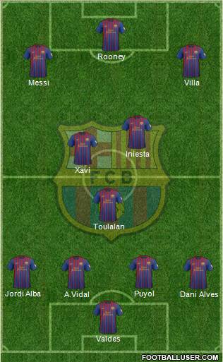 Valdes · A.Vidal · Dani Alves · Jordi Alba · Puyol · Toulalan · Xavi · Iniesta · Messi · Villa · Rooney