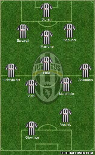 Storari · Bonucci · Barzagli · Marrone · Pirlo · Lichtsteiner · Asamoah · Marchisio · Vidal · Vucinic · Giovinco