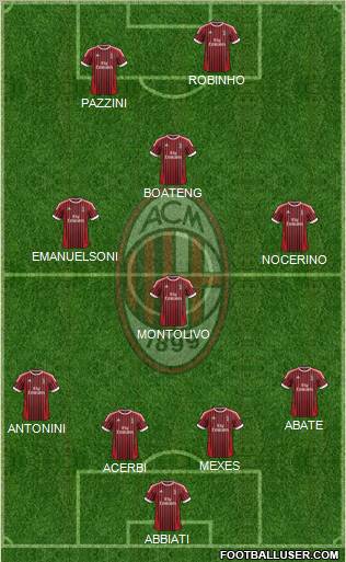 ABBIATI · ACERBI · MEXES · ANTONINI · ABATE · MONTOLIVO · NOCERINO · EMANUELSONI · BOATENG · PAZZINI · ROBINHO
