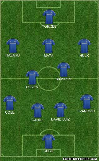 CECH · CAHILL · DAVID LUIZ · COLE · IVANOVIC · ESSIEN · RAMIRES · MATA · HULK · HAZARD · TORRES