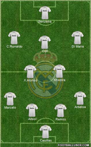 Casillas · Ramos · Albiol · Marcelo · Arbeloa · X.Alonso · Khedira · Ozil · C.Ronaldo · Di Maria · Benzema