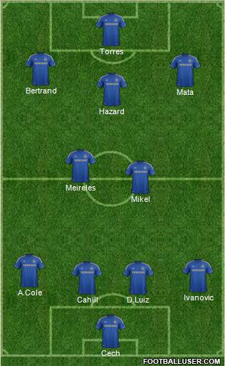 Cech · Cahill · D.Luiz · Ivanovic · A.Cole · Mikel · Meireles · Hazard · Mata · Bertrand · Torres