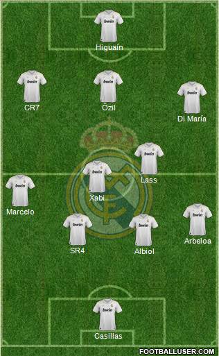 Casillas · Albiol · SR4 · Arbeloa · Marcelo · Xabi · Lass · Di María · CR7 · Özil · Higuaín