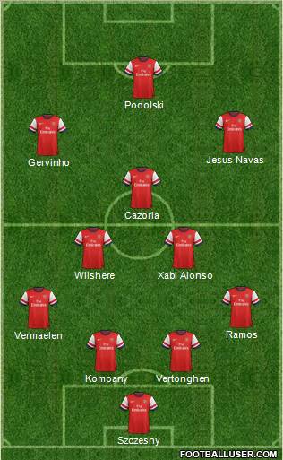 Szczesny · Kompany · Vertonghen · Vermaelen · Ramos · Wilshere · Xabi Alonso · Cazorla · Gervinho · Jesus Navas · Podolski