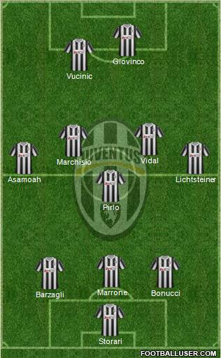 Storari · Barzagli · Bonucci · Marrone · Pirlo · Asamoah · Lichtsteiner · Marchisio · Vidal · Vucinic · Giovinco