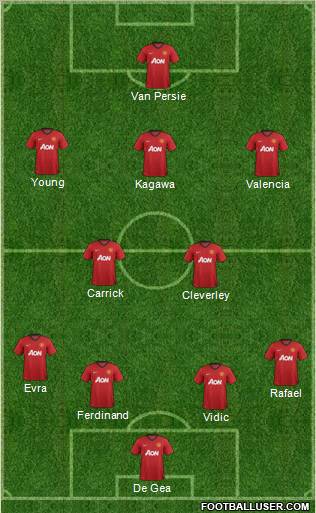 De Gea · Vidic · Ferdinand · Rafael · Evra · Cleverley · Carrick · Kagawa · Valencia · Young · Van Persie