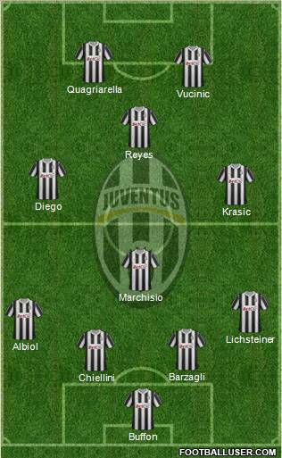 Buffon · Chiellini · Barzagli · Albiol · Lichsteiner · Marchisio · Krasic · Diego · Reyes · Vucinic · Quagriarella