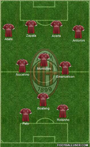 Zapata · Acerbi · Abate · Antonini · Montolivo · Nocerino · Emanuelson · Boateng · Robinho · Pato