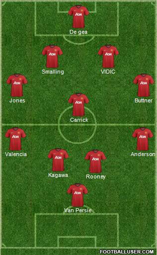 Van Persie · Rooney · Kagawa · Valencia · Anderson · Carrick · Jones · Buttner · Smalling · VIDIC · De geaStrongest Players, Attacking but defensive formation