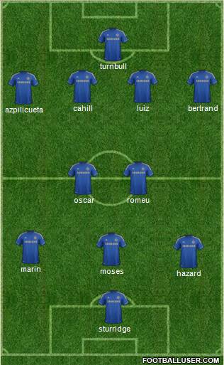 sturridge · hazard · moses · marin · oscar · romeu · azpilicueta · cahill · luiz · bertrand · turnbull