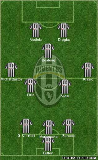 Buffon · Mertesacker · Bonucci · G. Chiellini · Vidal · Pirlo · Michel Bastos · Krasic · Boateng · Vucinic · DrogbaGK- M. Storari