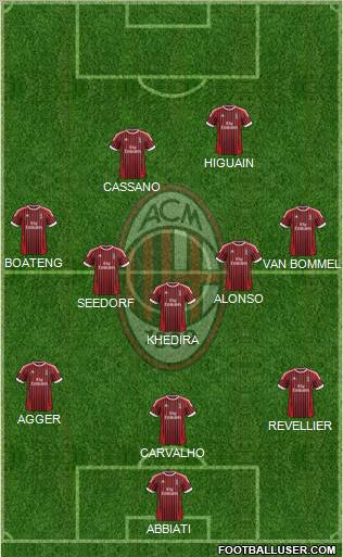 ABBIATI · CARVALHO · REVELLIER · AGGER · KHEDIRA · SEEDORF · ALONSO · VAN BOMMEL · BOATENG · CASSANO · HIGUAIN