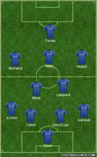 Cech · Cahill · David Luiz · Ivanovic · A.Cole · Mikel · Lampard · Bertrand · Hazard · Mata · Torres