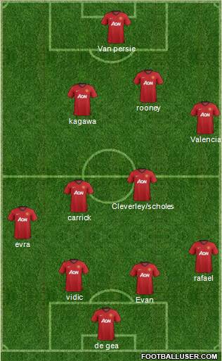 de gea · Evan · vidic · rafael · evra · carrick · Cleverley/scholes · Valencia · kagawa · rooney · Van persie