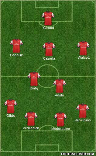Mertesacker · Vermaelen · Jenkinson · Gibbs · Arteta · Diaby · Cazorla · Walcott · Podolski · Giroud