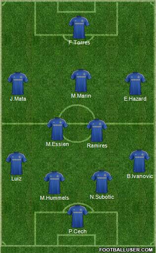 P.Cech · M.Hummels · N.Subotic · Luiz · B.Ivanovic · Ramires · M.Essien · J.Mata · E.Hazard · M.Marin · F.Torres