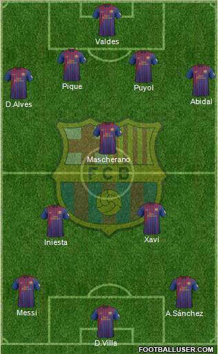 D.Villa · A.Sánchez · Messi · Iniesta · Xavi · Mascherano · D.Alves · Abidal · Puyol · Pique · Valdes