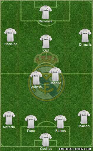 Casillas · Pepe · Ramos · Marselo · Maicon · Alonso · Modric · Ozil · Di maria · Ronaldo · Benzema