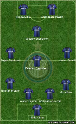 Júlio César · Walter Samuel · Andrea Ranocchia · Jonathan · Ibrahim M'baye · Esteban Cambiasso · Dejan Stanković · Javier Zanetti · Wesley Sneijder(c) · Diego Milito · Giampaolo Pazzini