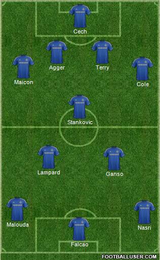 Falcao · Nasri · Malouda · Ganso · Lampard · Stankovic · Cole · Maicon · Agger · Terry · Cech