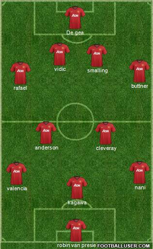 robin van presie · kagawa · valencia · nani · cleveray · anderson · rafael · buttner · smalling · vidic · De gea