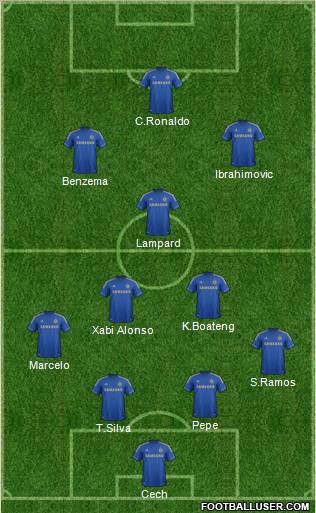 Cech · T.Silva · Pepe · S.Ramos · Marcelo · Xabi Alonso · K.Boateng · Lampard · Benzema · Ibrahimovic · C.Ronaldo