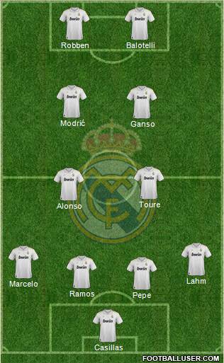 Casillas · Pepe · Ramos · Marcelo · Lahm · Alonso · Toure · Ganso · Modrić · Robben · Balotelli