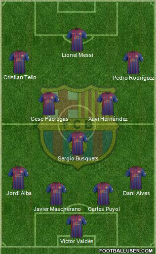 Víctor Valdés · Javier Mascherano · Carles Puyol · Jordi Alba · Dani Alves · Sergio Busquets · Cesc Fàbregas · Xavi Hernández · Pedro Rodríguez · Cristian Tello · Lionel MessiPrimera División - 1.Match day - 19.08.2012