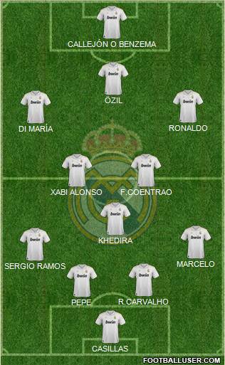 CASILLAS · PEPE · R.CARVALHO · SERGIO RAMOS · MARCELO · KHEDIRA · XABI ALONSO · F.COENTRAO · DI MARÍA · RONALDO · ÖZIL · CALLEJÓN O BENZEMA