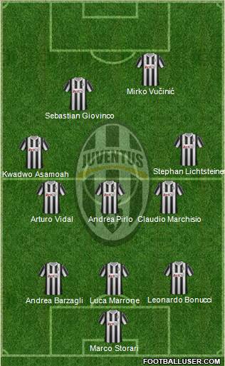 Marco Storari · Andrea Barzagli · Luca Marrone · Leonardo Bonucci · Arturo Vidal · Andrea Pirlo · Claudio Marchisio · Kwadwo Asamoah · Stephan Lichtsteiner · Sebastian Giovinco · Mirko VučinićSerie A - 1.Match day - 25.08.2012
