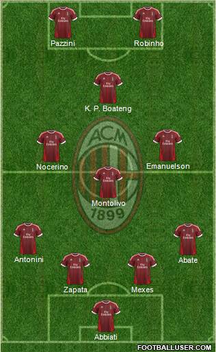 Abbiati · Zapata · Mexes · Abate · Antonini · Montolivo · Nocerino · Emanuelѕon · K. P. Boateng · Pazzini · Robinho