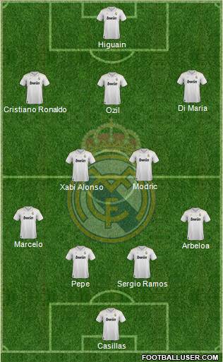 Casillas · Pepe · Sergio Ramos · Arbeloa · Marcelo · Xabi Alonso · Modric · Ozil · Cristiano Ronaldo · Di Maria · Higuain