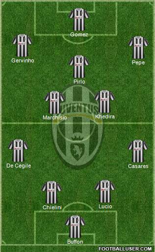 Buffon · Chielini · Lucio · Casares · De Cegile · Marchisio · Khedira · Pirlo · Pepe · Gervinho · Gomez