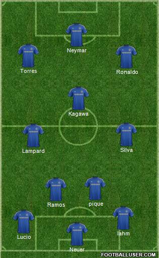 Neuer · Lucio · lahm · Ramos · pique · Lampard · Silva · Kagawa · Ronaldo · Torres · Neymar