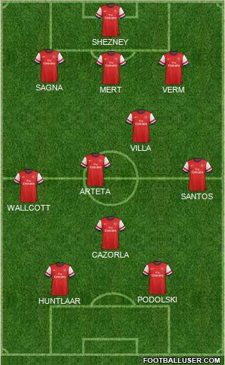 HUNTLAAR · PODOLSKI · CAZORLA · WALLCOTT · SANTOS · ARTETA · VILLA · MERT · VERM · SAGNA · SHEZNEY