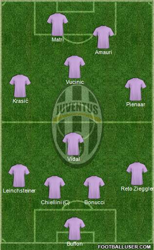 Buffon · Chiellini (C) · Bonucci · Leinchsteiner · Reto Zieggler · Vidal · Pienaar · Krasić · Vucinic · Amauri · Matri