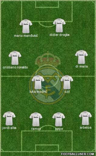 ramos · pepe · jordi alba · arbeloa · luka modrić · ozil · cristiano ronaldo · di maria · mario manđukić · didier drogba