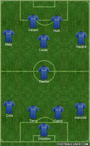 Courtois · Cahill · Terry · Ivanović · Cole · Danilo · Lucas · Hazard · Mata · Hulk · Cavani