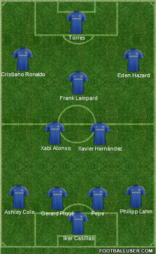 Iker Casillas · Gerard Piqué · Pepe · Ashley Cole · Philipp Lahm · Xavier Hernández · Xabi Alonso · Frank Lampard · Eden Hazard · Cristiano Ronaldo · Torres