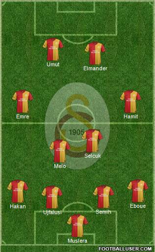 Muslera · Ujfalusi · Semih · Hakan · Eboue · Melo · Selcuk · Emre · Hamit · Elmander · Umut