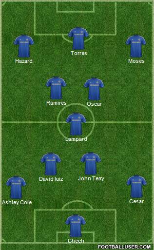 Chech · Ashley Cole · Cesar · David luiz · John Terry · Lampard · Oscar · Ramires · Hazard · Moses · Torres