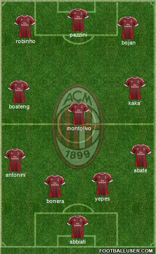 abbiati · bonera · yepes · antonini · abate · montolivo · boateng · kaka' · bojan · robinho · pazzini