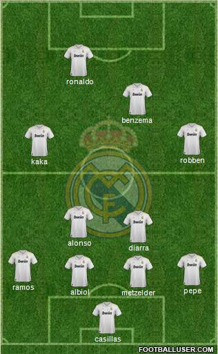 casillas · metzelder · albiol · pepe · ramos · diarra · alonso · kaka · robben · benzema · ronaldo