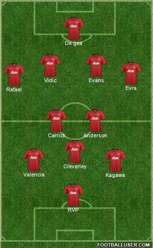 RVP · Kagawa · Valencia · Cleverley · Carrick · Anderson · Rafael · Evra · Vidic · Evans · De gea